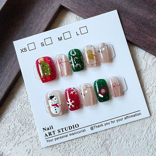 Regal & Reckless Sweet Christmas Press-On Nails – 10pcs Snowman & Tree