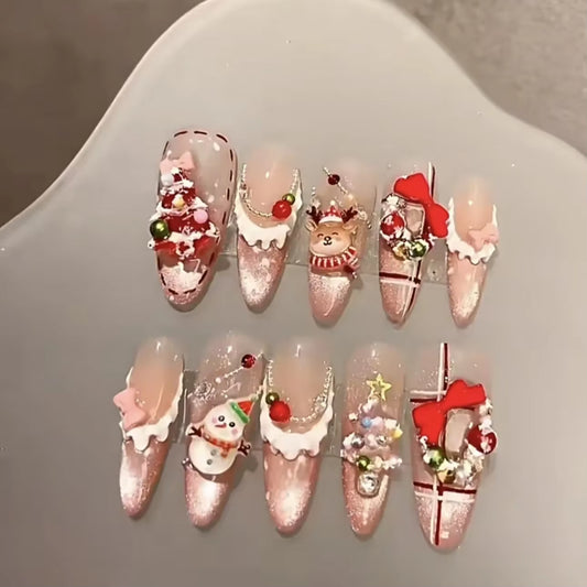 Regal & Reckless Festive Almond Press-On Nails – Santa, Snowman & Tree Set (24pcs)